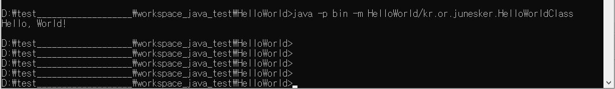 java -p bin -m HelloWorld/kr.or.junesker.HelloWorldClass