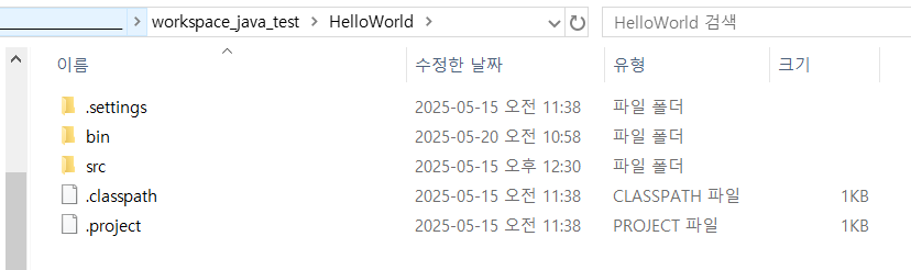 μν¬μ€νμ΄μ€μ μ μ₯λ λ΄ νλ‘μ νΈμ μμΉλ‘ μ΄λνλ©΄ 'src', 'bin' ν΄λκ° μ‘΄μ¬ν©λλ€. 'src' ν΄λμλ μλ° μμ€ νμΌ(.java)μ΄ μ μ₯λμ΄ μκ³ , 'bin' ν΄λμλ λ°μ΄νΈ μ½λ νμΌ(.class)μ΄ μ μ₯λμ΄ μμ΅λλ€.