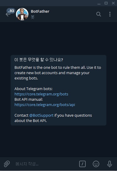 1. BotFather ๋ด์ ๊ฒ์ํ๋ค.