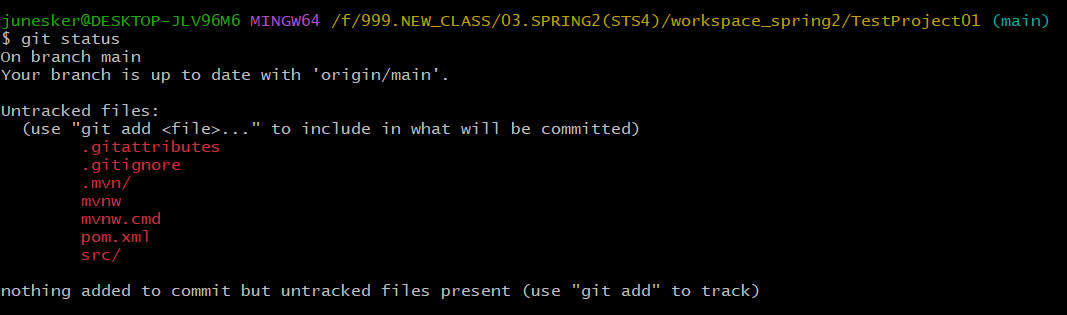 1. ' git status ' ๋ช ๋ น์ด๋ฅผ ์ ๋ ฅํด์ฃผ์ธ์.