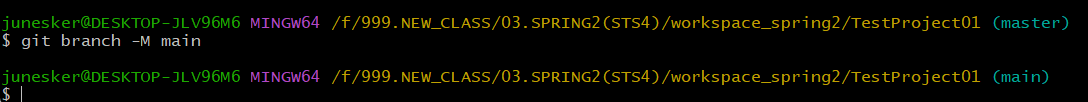 8. ' git branch -M main ' ๋ช ๋ น์ด๋ฅผ ์ ๋ ฅํด์ฃผ์ธ์.