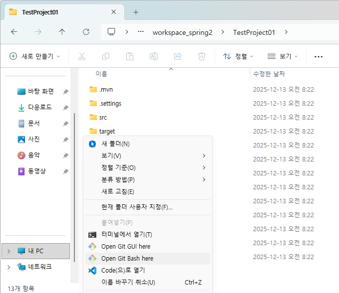 Commit์ ์งํํ ํด๋ ์์น์์ Git Bash ์คํ ๋ฐฉ๋ฒ