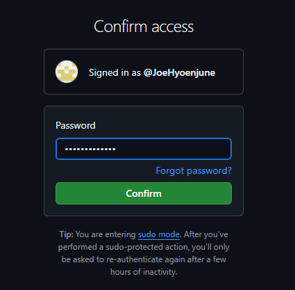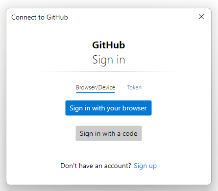 11. ๋ช ๋ น์ด๋ฅผ ์ ๋ ฅ ํ, GitHub ๋ก๊ทธ์ธ์ฐฝ์ด ๋ํ๋ฉ๋๋ค. 'Sign in with your browser' ๋ฒํผ์ ๋๋ฌ ๋ก๊ทธ์ธ์ ์งํํด์ฃผ์ธ์.