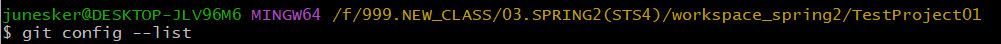 3. ' git config --list ' ๋ช ๋ น์ด๋ฅผ ์ ๋ ฅํด์ฃผ์ธ์.