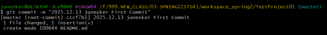 7. ' git commit -m ์ฃผ์ ๋ด์ฉ ' ๋ช ๋ น์ด๋ฅผ ์ ๋ ฅํด์ฃผ์ธ์.