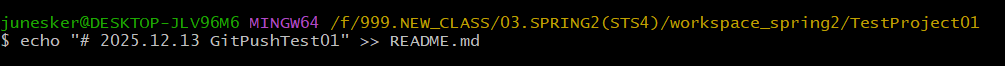 4. ' echo ๋ด์ฉ >> README.md ' ๋ช ๋ น์ด๋ฅผ ์ ๋ ฅํด์ฃผ์ธ์.