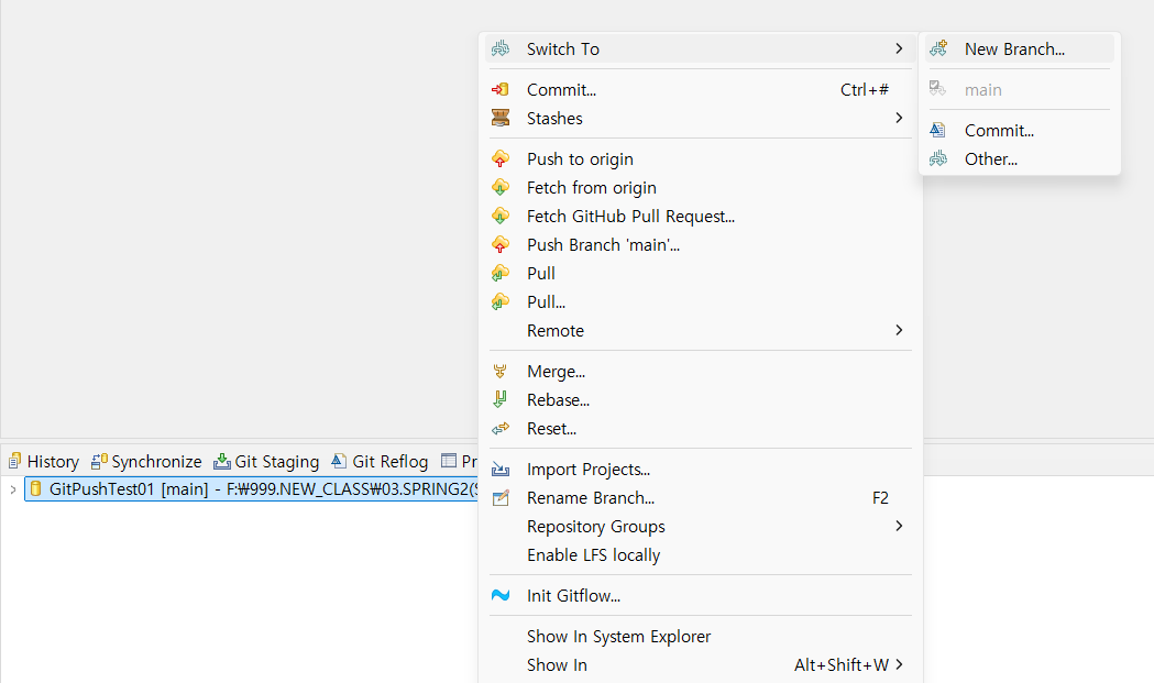 STS Git GUI๋ก ๋ธ๋์น ์์ฑํ๊ธฐ