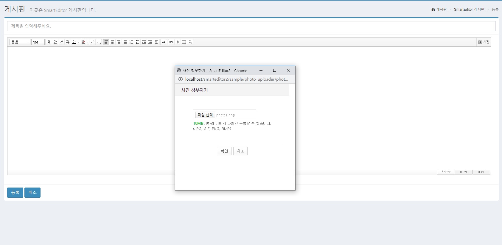 ์ฌ์ง ํต ์ ๋ก๋๋ SmartEditor2๋ฅผ ์ด์ฉํ์ฌ ๊ธ์ ์์ฑํ ๋ ์ฌ์ง์ ์ฝ๊ณ ๋น ๋ฅด๊ฒ ์ ๋ก๋ํ ์ ์๋ ํ์ UI์ ์๋ํฐ ํ๋ฌ๊ทธ์ธ์ ์ ๊ณตํ๋ค. ์๋ํฐ์ ํ์ ๊ด๋ จ ์ฝ๋๋ฟ๋ง ์๋๋ผ ํ์ผ์ ์ ๋ก๋ํ๋ ์๋ฒ ์์ ๋ ๊ตฌํํด์ผ ํ๋ค. ํ์ UI์์ ์๋น์ค์ ์ฐ๊ฒฐ๋๋ ๋ฐฉ๋ฒ์ ์ด ๋ฌธ์์์ ๋ค๋ฃจ์ง ์๋๋ค. ์ฌ์ฉ์ ๋ธ๋ผ์ฐ์ ์ HTML5 ์ง์ ์ฌ๋ถ์ ๋ฐ๋ผ ๋ค์ ๋ ๊ฐ์ง์ UI๊ฐ ์ฌ์ฉ๋๋ค.
