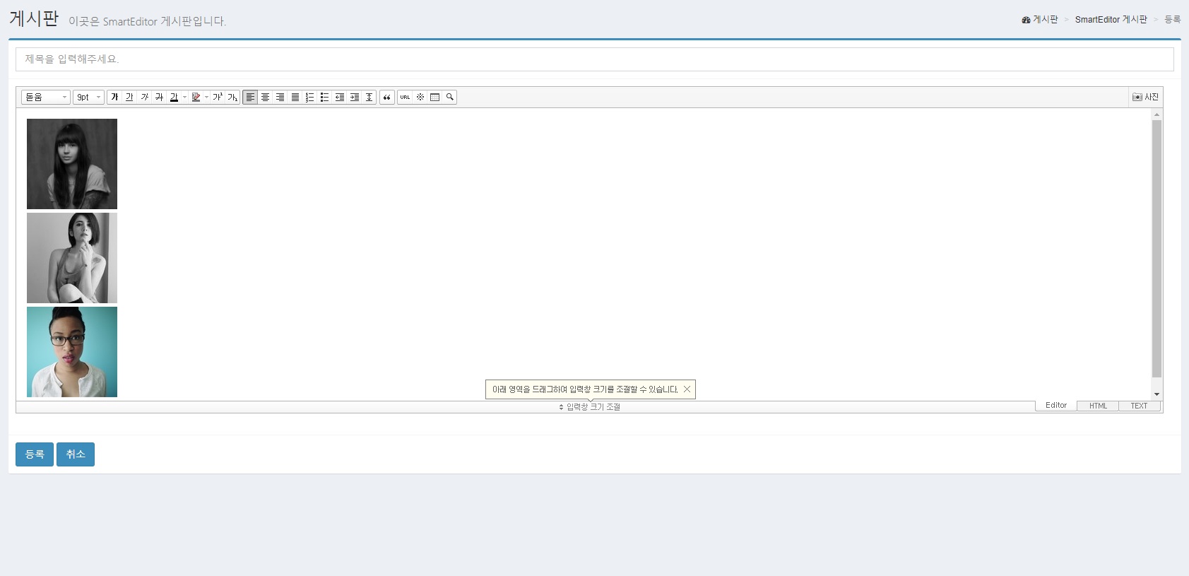 6. ์ค๋งํธ์๋ํฐ2๋ฅผ ์ ์ฉํ ๋ฑ๋ก ํ์ด์ง์ textarea์ ์คํฌ๋ฆฝํธ๋ฅผ ์ถ๊ฐํ๋ค.