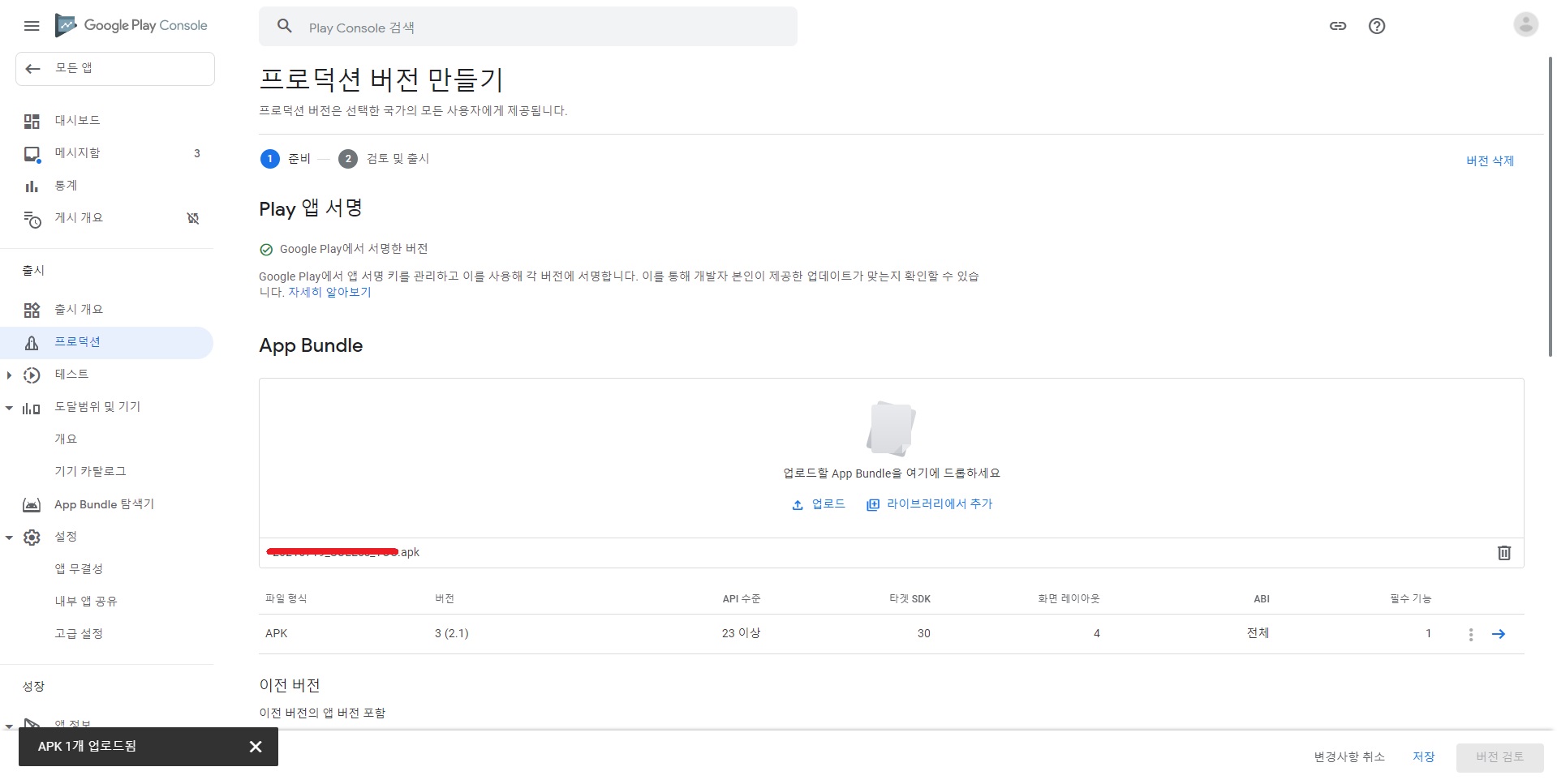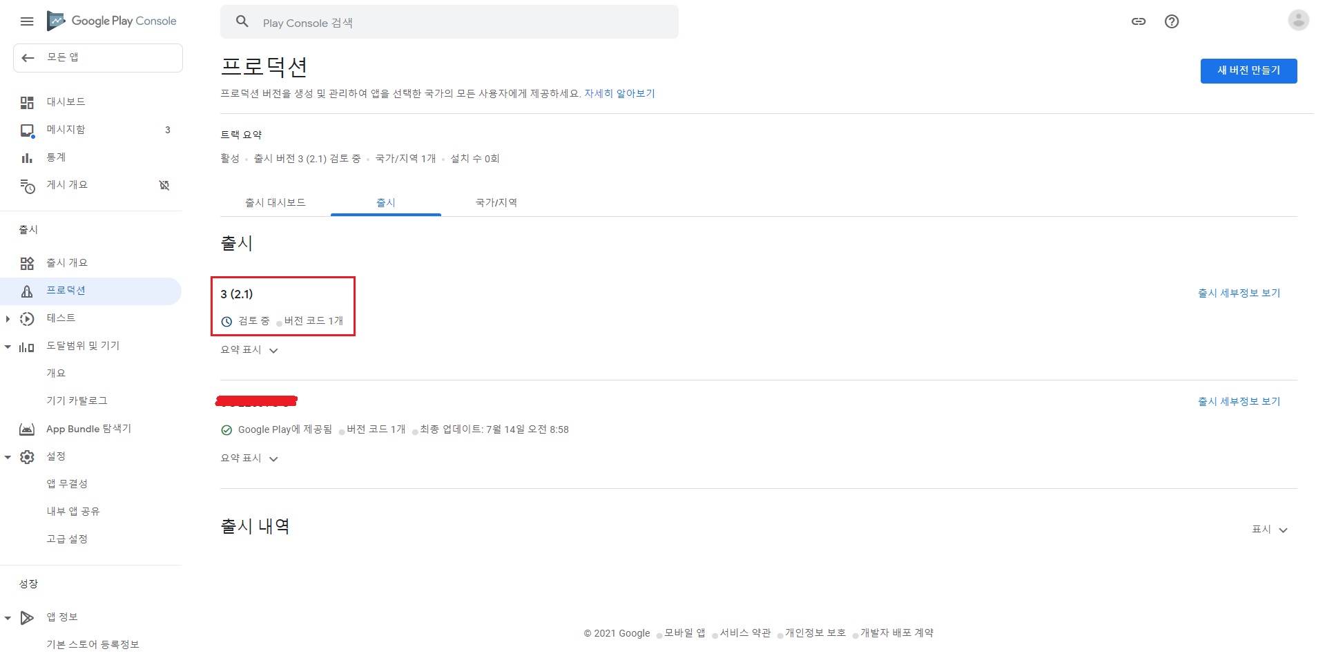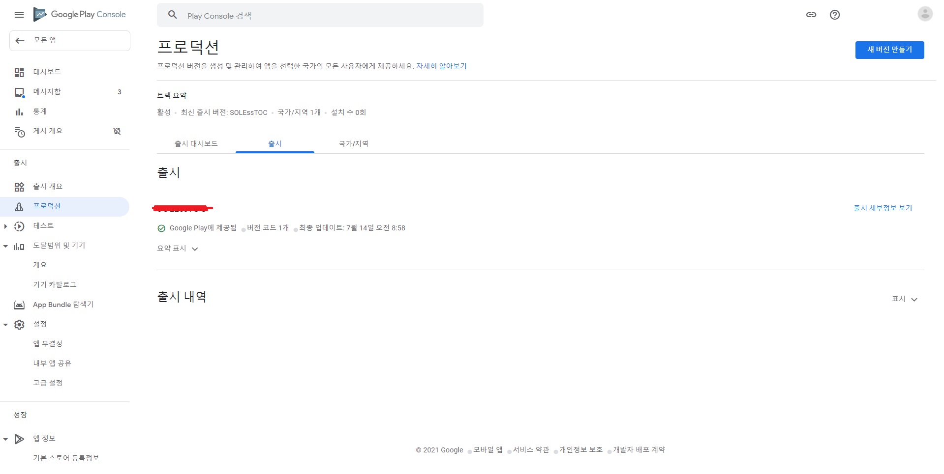 2. Google Play Consoleμμ νλ‘λμ μ μ λ²μ λ§λ€κΈ°λ₯Ό ν΄λ¦νλ€.