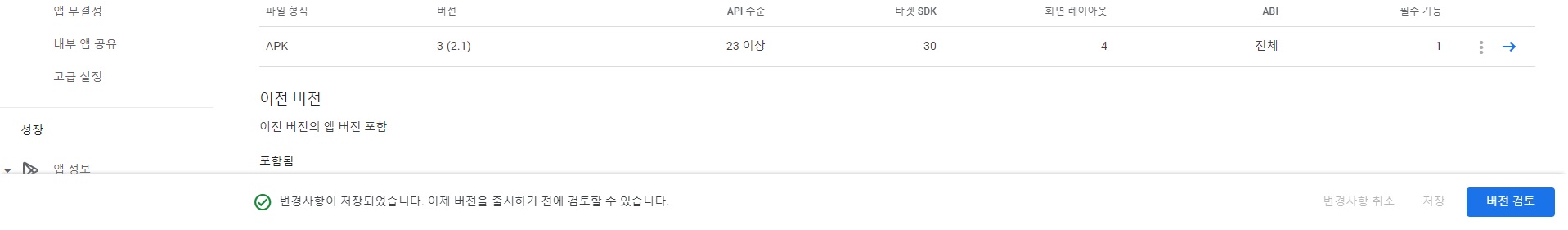 μλ‘μ΄ λ²μ μΌλ‘ μ λ°μ΄νΈ λ APKλ₯Ό μ λ‘λ νλ©΄ μλ μ λ‘λ λͺ©λ‘μ μΆκ°ν APKκ° λ±λ‘λκ±Έ νμΈν μ μλ€. μλ νλ¨μ λ΄μ©λ μμ νλ€. μμ μ΄ λ€ λμμΌλ©΄ νλ¨ μ μ₯ λ²νΌμ ν΄λ¦νλ€.